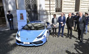 Presso il palazzo del Viminale ormai un anno fa è stata consegnata alla polizia stradale e in particolare al Ministro dell’Interno Sen. Marco Minniti, da Stefano Domenicali, Chairman & Chief Executive Officer di Automobili Lamborghini, la nuovissima Lamborghini Huracan Polizia.